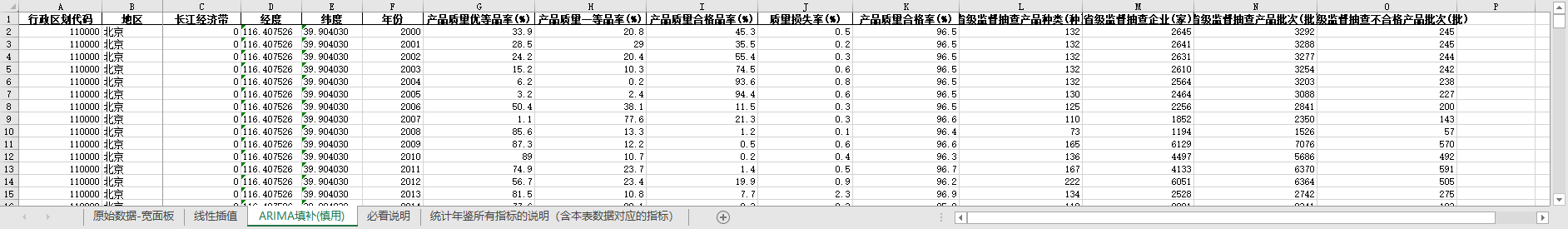 ARIMA填补。基于ARIMA模型,利用同一地区的时间序列数据,对缺失值进行预测填补。