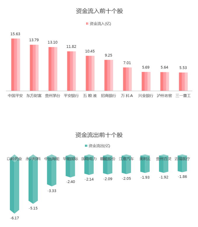 盘面上,资金流入最多的个股是中国平安,资金流出最多的个股是以岭药业。