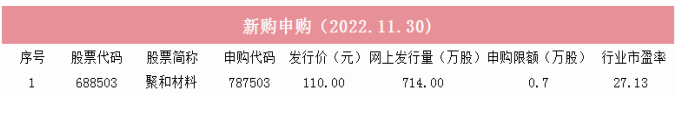 明日两市共计1只新股申购。
