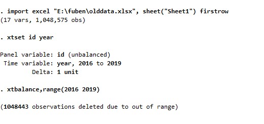 如图,我的数据是33家公司四年14个指标,为什么会有一百多万个obs啊?以及想把非平衡调成平衡面板,看一个大佬用的xtbalance,但是这几乎把我的观测值都删了……这是啥情况啊