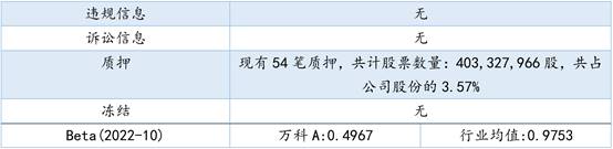 万科A属于A股主板,现有54笔质押,共计股票数量:403,327,966股,共占公司股份的3.57%,占个人股份比例超过50%的股东共计1个,需要格外关注。目前经营制度无缺陷,处于盈利状态,但近四季度利润出现波动下降趋势,存在较高债务风险,可知其业绩欠佳,谨慎选择。