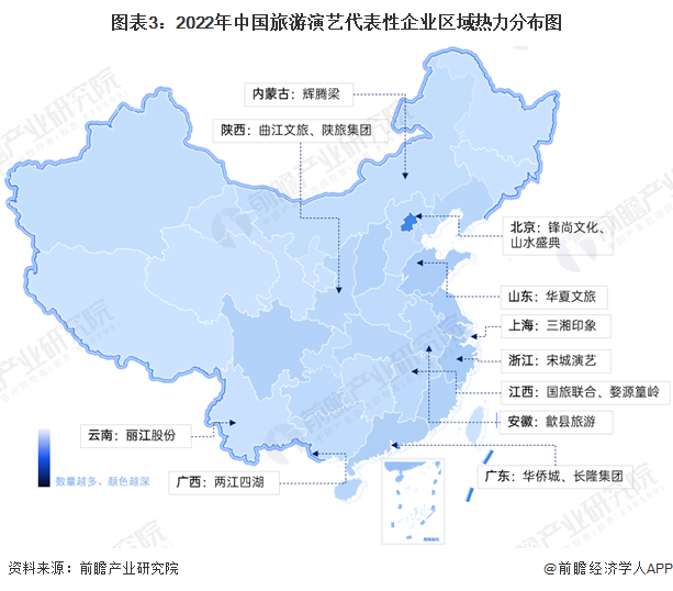 从全国旅游演艺区域上看,大部分集中在文化资源较多,自然风景区密集的地区,例如陕西、内蒙古、云南、广西、江西等地。广东代表性企业有华侨城、长隆集团;陕西有曲江文旅;云南有丽江股份等。