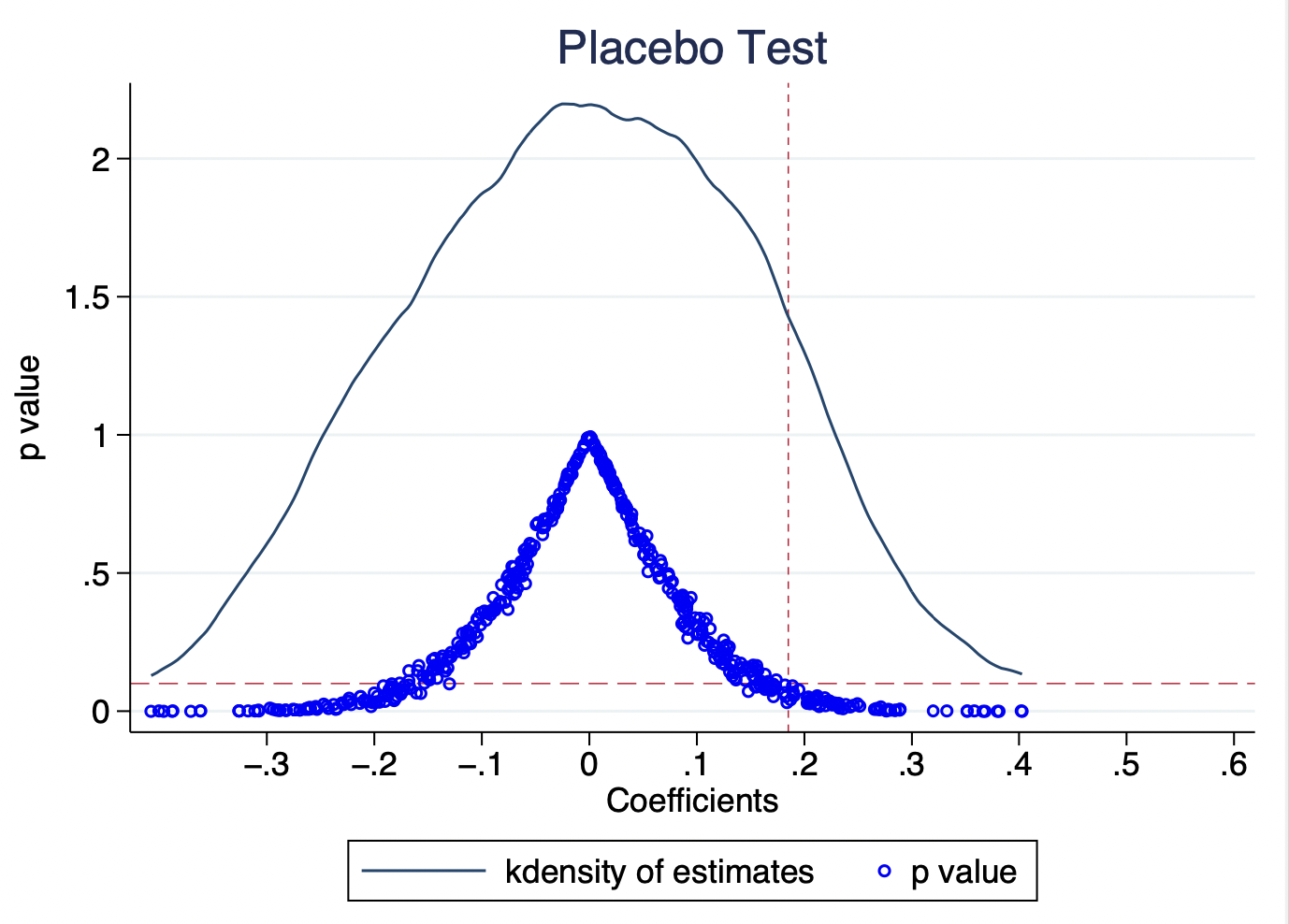 mat p[`i',1] = 2*ttail(df_r,abs(_b[DID]/_se[DID]))