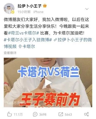 上述报道中还提到,阿卜杜勒拉赫曼·阿勒萨尼的父亲是卡塔尔前商贸部部长法赫德·贾西姆·阿勒萨尼。半岛电视台的视频账号也对此进行了报道,值得一提的是,半岛电视台对“拉伊卜小王子”的称呼是“这个卡塔尔青年”,而非“王子”。