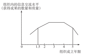 美国学者卡兹(Katz)从保持企业活力的角度提出了企业组织寿命学说。他通过对科研组织的寿命研究,发现组织寿命的长短与组织内的信息沟通情况有关,而且与获得的成果有关。他通过大量调查统计绘出一条组织寿命曲线,即卡兹曲线(如图2所示)。