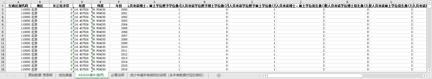 yusb 发表于 2022-12-4 18:51 全国31个省份在职人员攻读博士硕士学位授予学位数招生数在校生数2000-2021含无缺失值填补含经纬度 数据指 ...