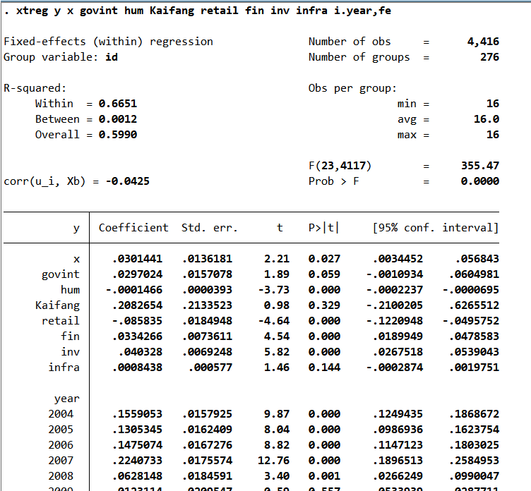 用stata做面板门槛回归,我的所有数据都是09-18年的