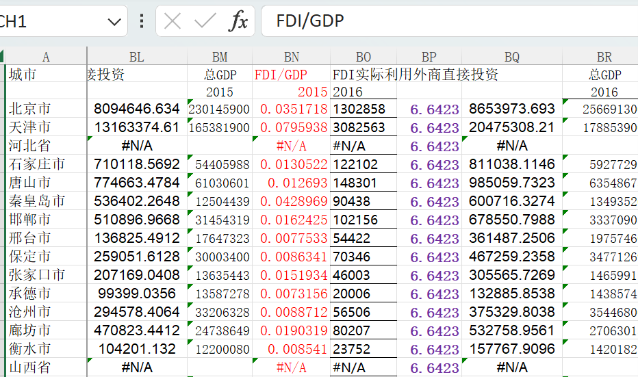 03-19年287个地级市外商投资实际使用金额及fdi数据