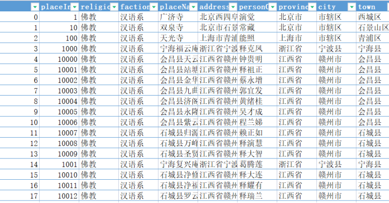 本次爬取宗教活动场所分布信息包括道教与佛教数据,并提供python爬取代码