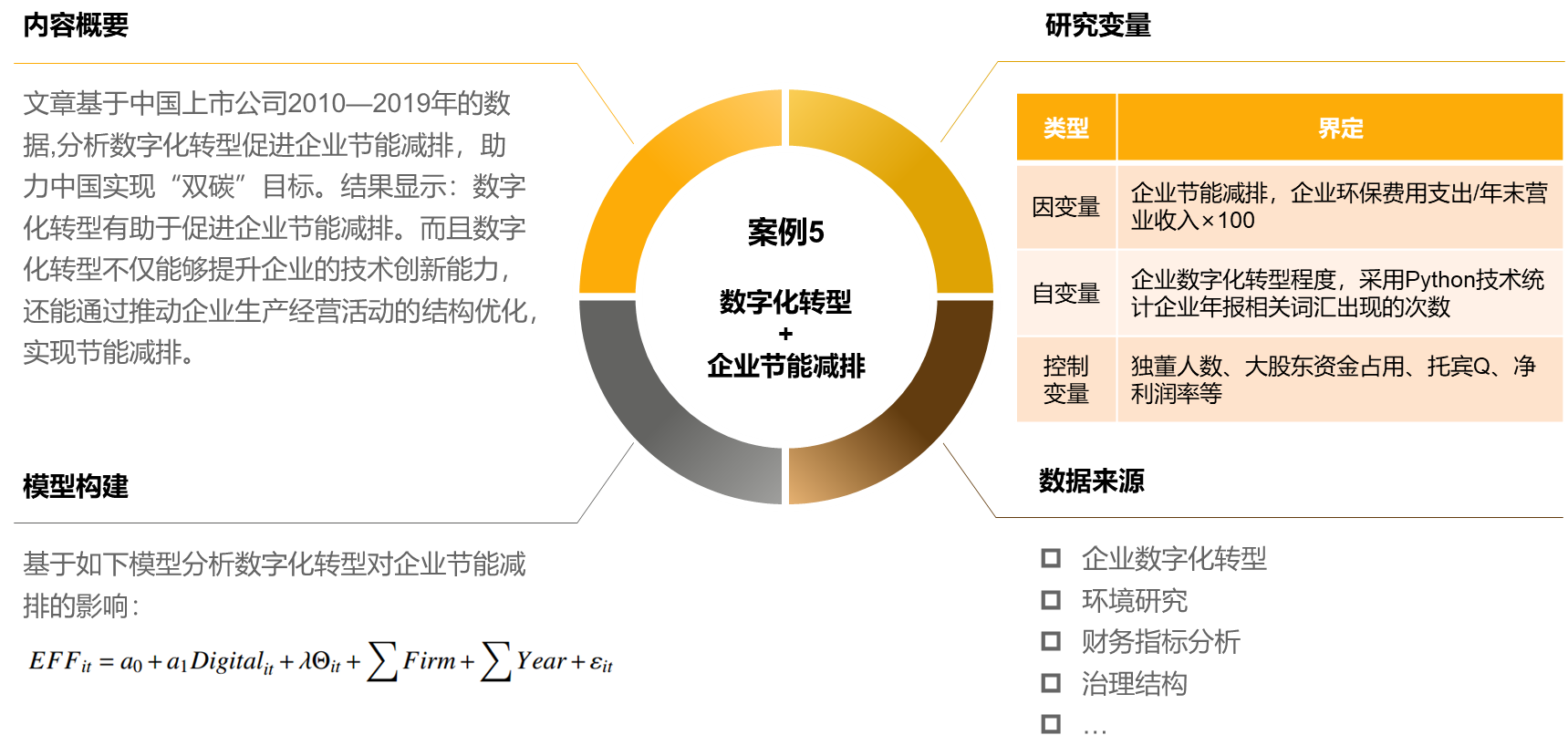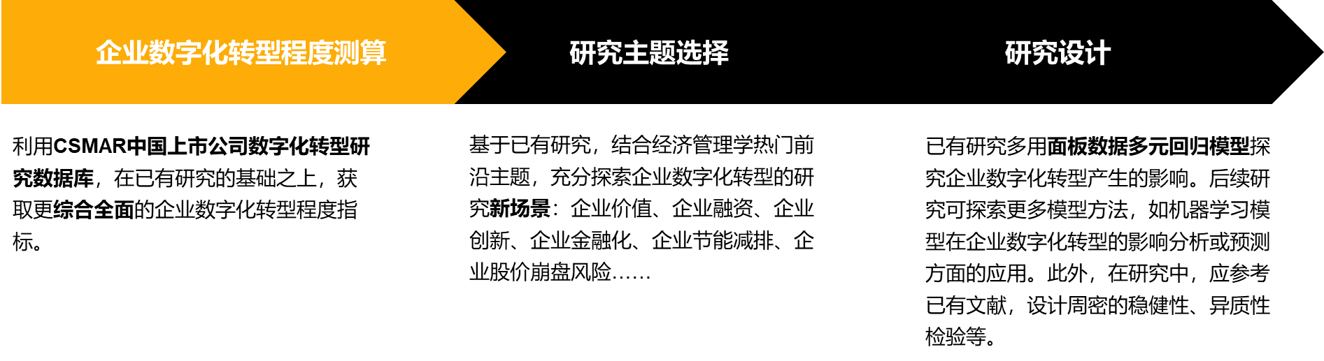 企业数字化转型是一个包罗万象的研究主题,可以与传统企业研究的各主题以及当前企业发展密切关注的各方面结合进行研究。这里下面将列举一些场景作为例,为研究者分享对应的实证范例。