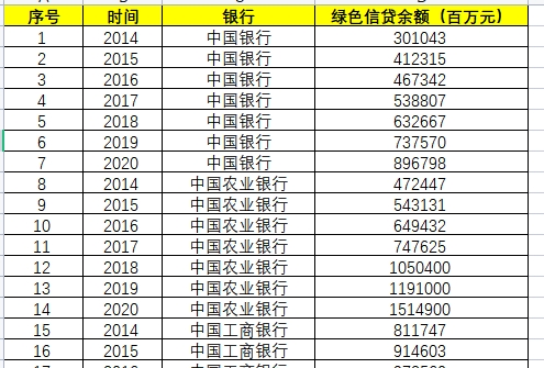 1、数据源名称:国有大型商业银行和全国股份制商业银行2014-2020年绿色信贷面板数据
