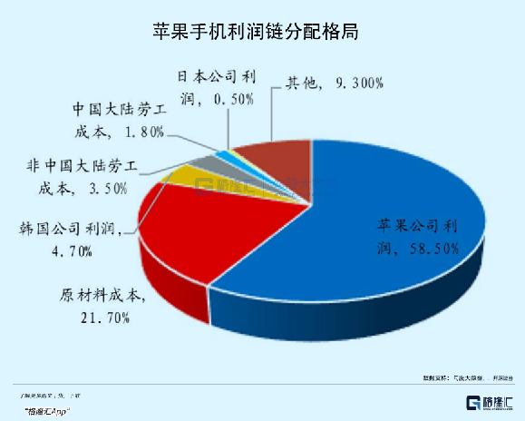 但在另一方面,在一部苹果手机的利润分配中,苹果拿走了近6成,包括中国企业在内的无数原材料供应商的利润只有2成出头,而为苹果日夜加班组装手机的中国大陆劳工成本甚至仅有1.8%,他们绝大部分来自富士康工厂。