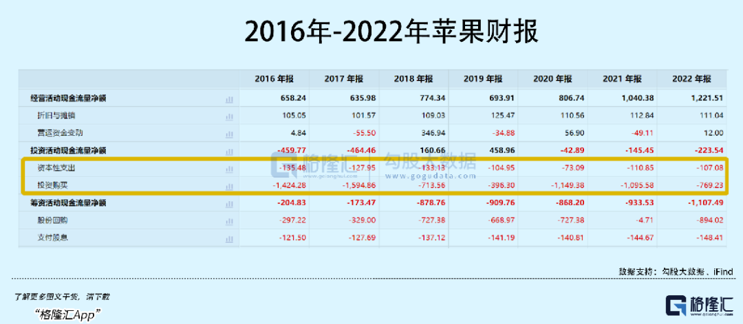 翻看苹果财报,每年都有百亿美元的资本支出,其中75%以上是用于精密设备和软件购买,全是给供应链企业准备的。