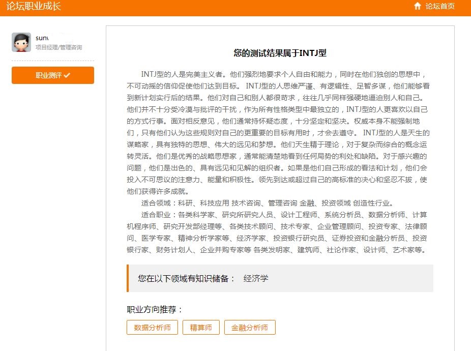 大家好,请问一下我的职业类型测试
