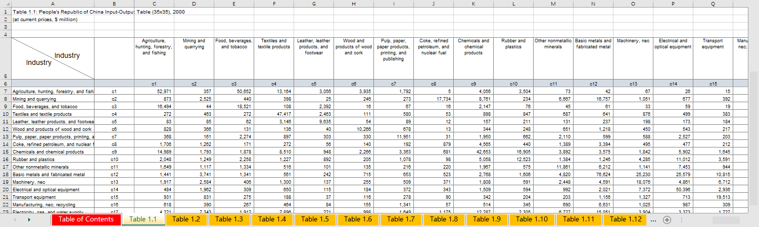 Table 1.11: People's Republic of China Input-Output Table, 2016 Table 1.11