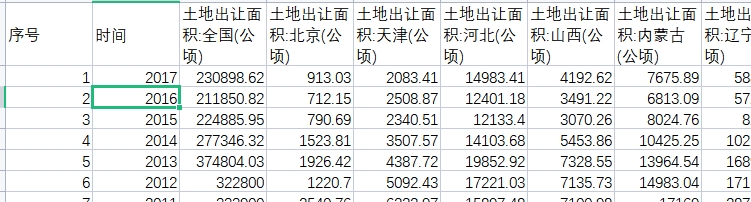 1、数据源名称:中国各省土地出让面积与成交价款1999年到2017年