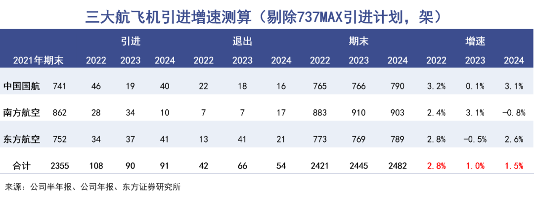 即便是交付确定性比波音更高的空客,根据其披露的订单,22-25 年空客可交付中国航司和租赁公司 504 架飞机,占全行业 12.4%,考虑到还会存在机队退出,则21-25 年复合增速 2.4%。