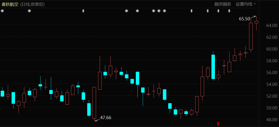 在航空板块行情刚开始启动的时候,华夏航空、吉祥航空这两家民营航司也同样出现放量上涨,这说明了资本对于民营航空公司的整体性看好。
