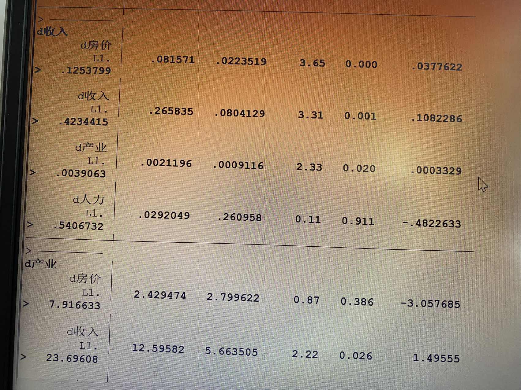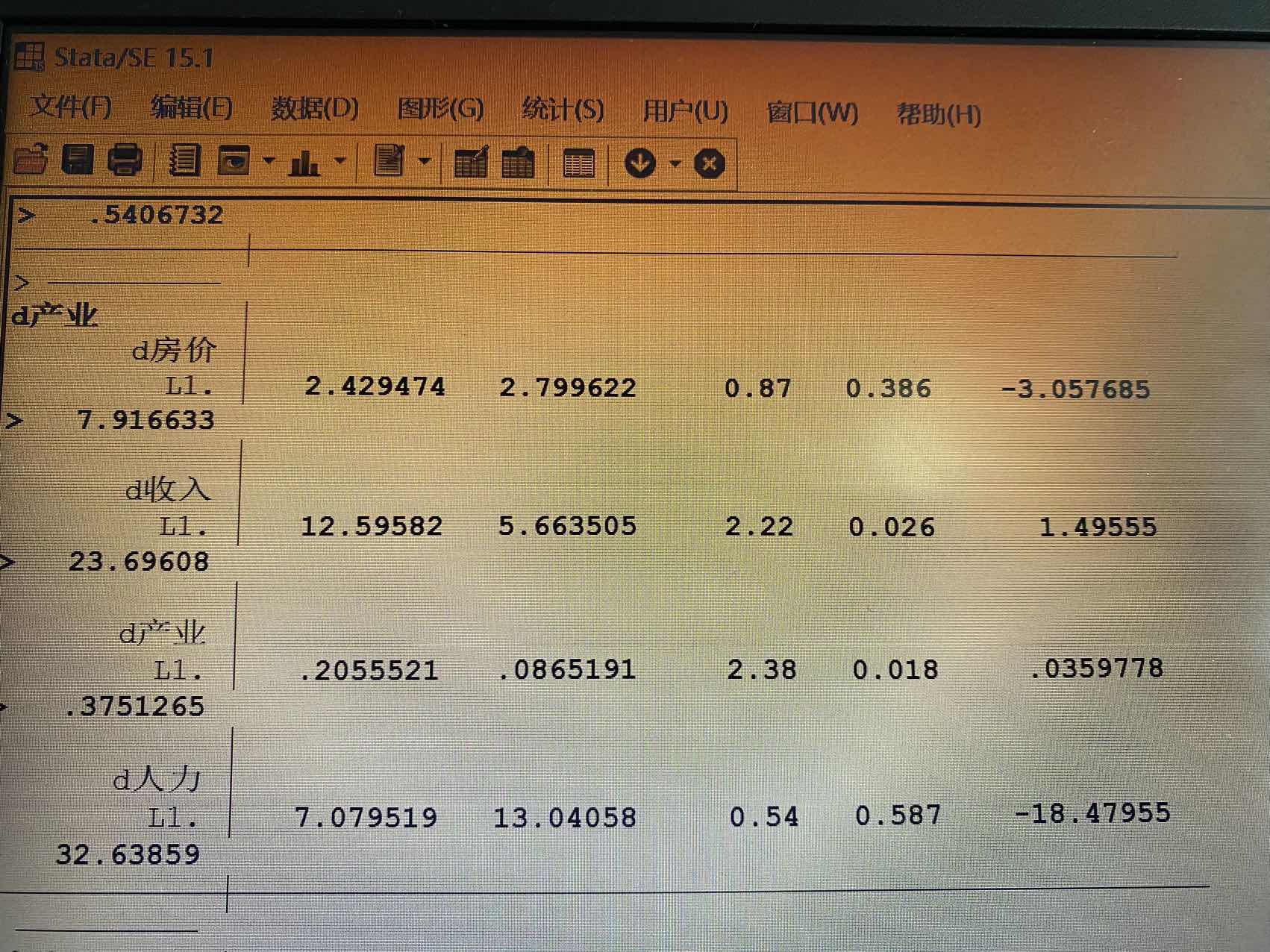 哪位大神可以帮忙看看,pvar模型结果前后矛盾,产业滞后一期和房价负相关,收入滞后一期和房价负相关,这是出了什么问题呀???