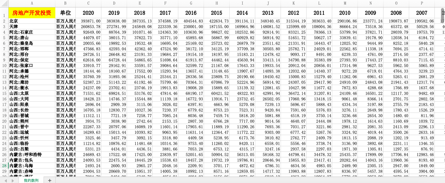 近300个地级市 各市 城市 1996-2020年 房地产开发投资 住宅 商品房销售价格 房价