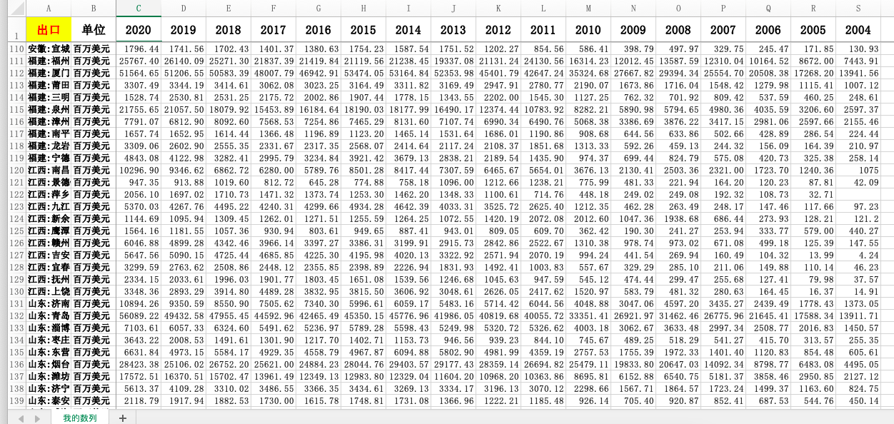 近300个地级市 城市 各市 2003-2020年 出口金额 进口金额 贸易逆差