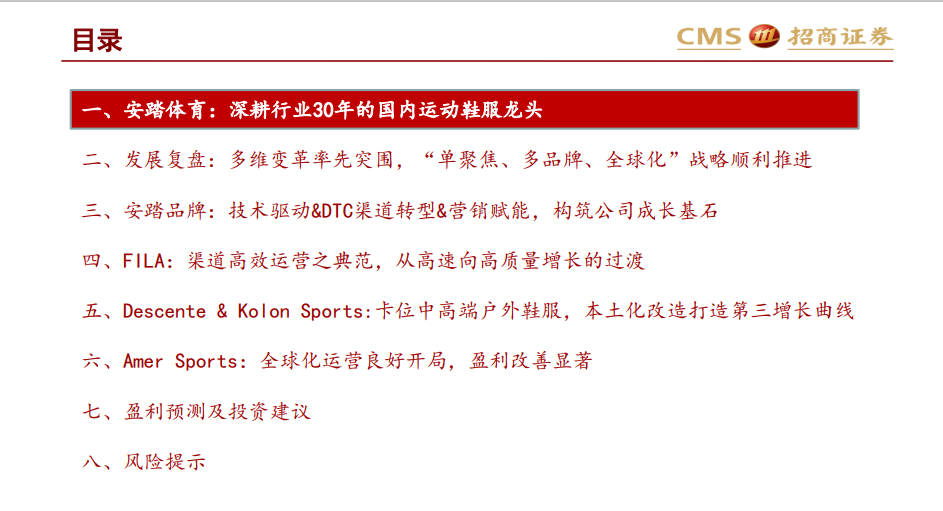 高效的组织推动研发成果持续迭代,安踏品牌持续推出虫洞科技、蓄力胶囊、氢科技、氮科技等多种中底缓震材料。渠道持续提升管控力度,安踏品牌2011年进行渠道零售化扁平化改革,2021年推进DCT模式升级;Fila于2011年开启直营化改革,一二线城市核心商圈之核心位置优质大店运营能力领先,为Descente、Kolon、始祖鸟国内渠道扩张做引领。营销方面,2008年前的奥运营销助力安踏品牌深入人心,随后借助奥运赛事赞助&冠军代言持续强化运动基因,并携手流量明星圈粉时尚人士,扩大受众群体。