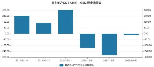 截至2022年上半年,富力地产现金及现金等价物20.24亿元(人民币,下同),受限制现金132.96亿元,总现金及银行存款(包括受限制现金)为人民币153.20亿元;而截止到2021年末,富力地产的现金及银行存款(包括受限制现金)总额为211.04亿元,其中现金及现金等价物62.59亿元。值得一提的是,2020年时,富力地产的现金及现金等价物尚有256.73亿元。这意味着,不到三年时间,富力地产的现金及现金等价物已严重缩水90%以上。与此同时,这家老牌房企的现金流情况也不容乐观。今年上半年,富力地产的经营活动现金流净额自2020年6月后再度出现负值,为-31.10亿元。而对比2021年同期,这一指标还能维持在79.33亿元。不仅如此,2020年以来,富力地产筹资性现金流净额也出现持续净流出,公司再融资压力巨大,流动性承压。