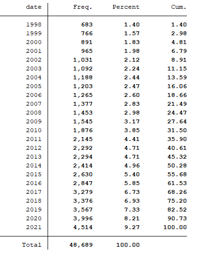 A股公司约概率风险数据stata代码do文件违约概率EDF结果1999-2021 | https://bbs.pinggu.org/thread-11238524-1-1.html |