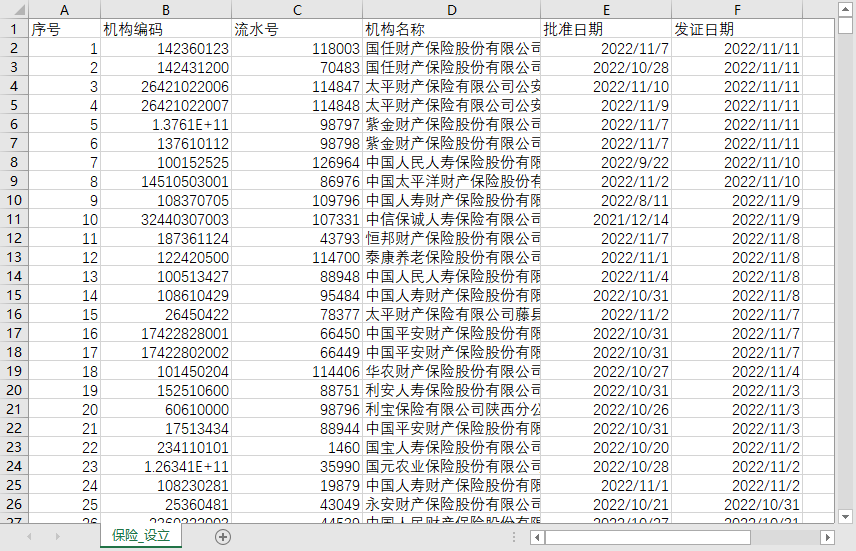 4、指标说明:序号、机构编码、流水号 、机构名称、批准日期、发证日期