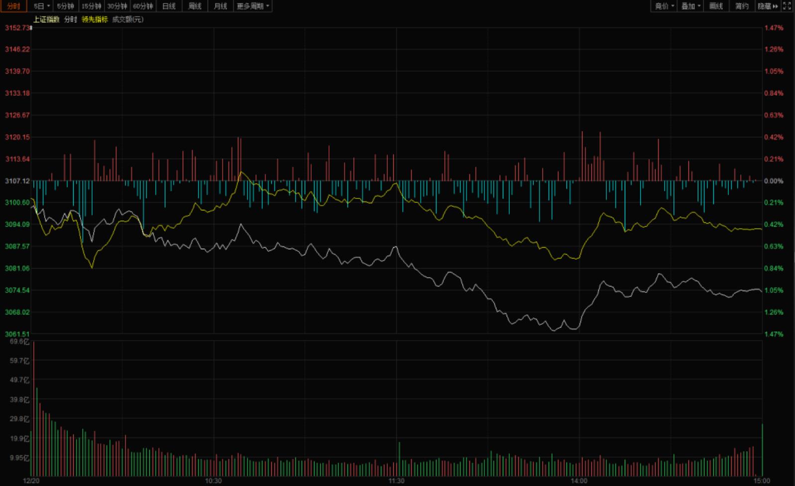【指数走势】昨天市场中阴杀跌之后今天依旧呈现低迷的走势。今天市场杀跌的主要动力来自于权重板块,以茅台为首的大市值品种对指数的拖累较大,小市值品种受伤幅度较轻。