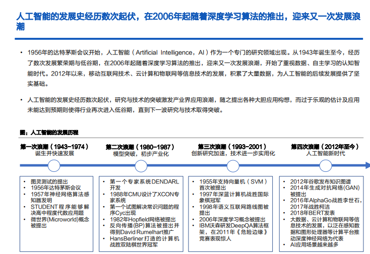 1950年,英国科学家艾伦图灵发表了论文讨论创造出具有真正智能的机器的可能性,并提出了著名的图灵测试:如果一台机器能够与人类展开对话而不能被辨别出其机器身份,那么称这台机器具有智能。