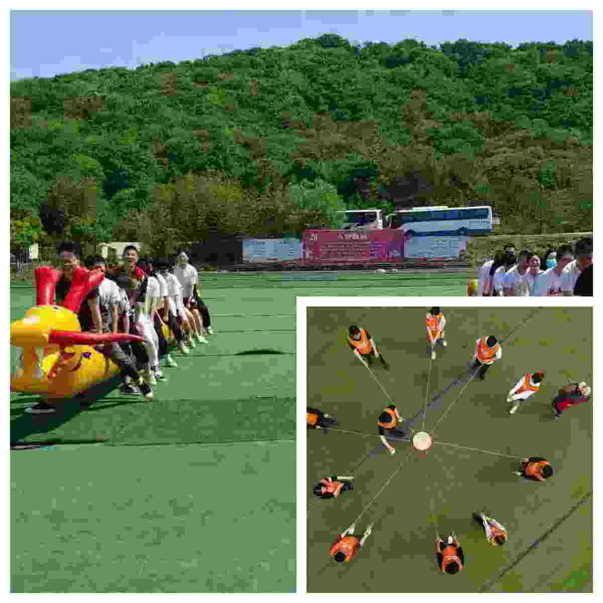 运转乾坤:这个游戏保你一听就会,其实不难,我们要举起一个特别大的球,差不多十个人左右才能完成,跟随着节奏的出发,一起往前跑去,在抵达终点线之前,我们要保持一直的步伐,跟随队友的脚步,一起冲向胜利,这个项目考验队友之间的相互配合能力,以及团队之家的沟通,是个很有挑战性的项目。