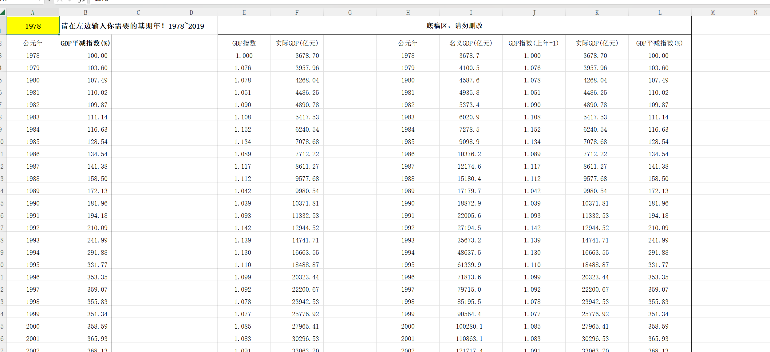 整理1978-2019年中国GDP平减指数(可选择任意年份)