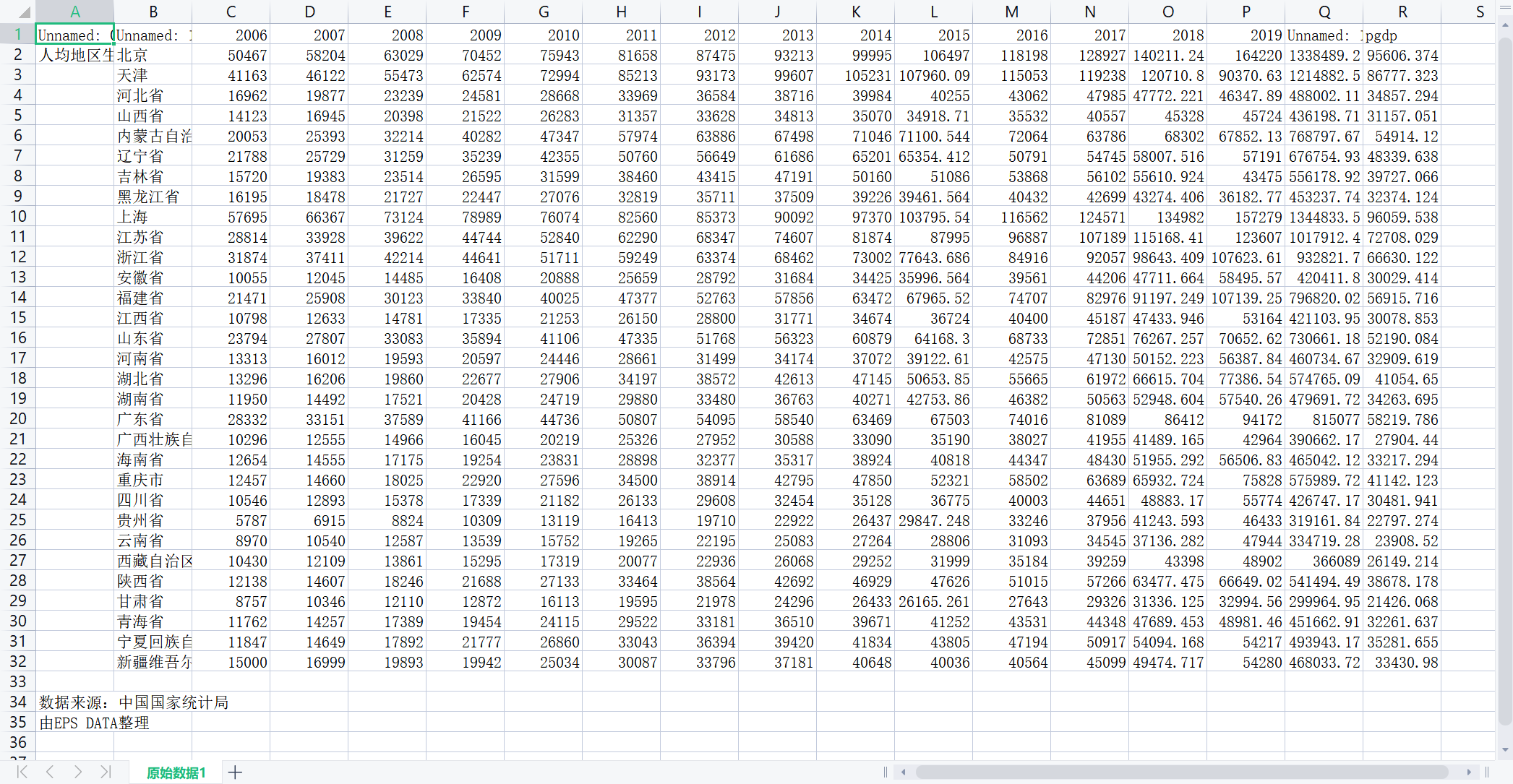 原始数据1.csv; 原始数据2.csv; 各省市邻接矩阵、经济地理矩阵、非对称经济地理矩阵(八类矩阵).csv; 四种权重矩阵结果.csv