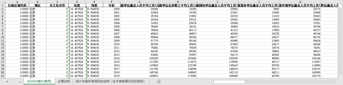 全国31个省份国有集体城镇单位就业人员平均实际货币工资指数2000-2021含无缺失值填补含经纬度