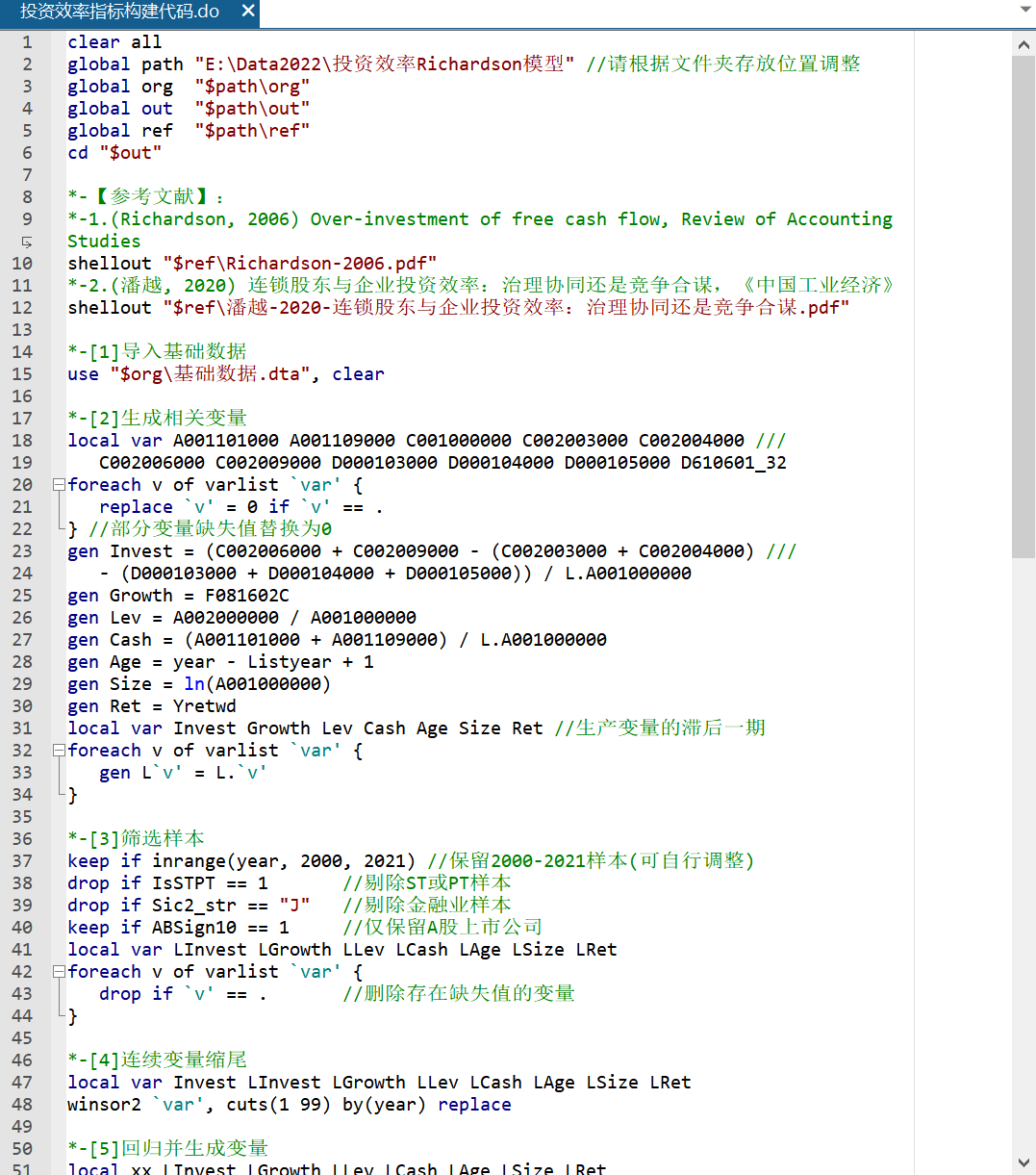 【更新至2020】上市公司投资效率-Richardson模型(代码+数据)