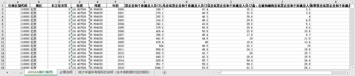 ARIMA填补。基于ARIMA模型,利用同一地区的时间序列数据,对缺失值进行预测填补。