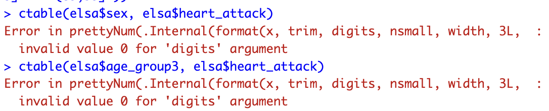 "summarytools" 中的function: ctable( ). 但是显示错误,如图1所示。