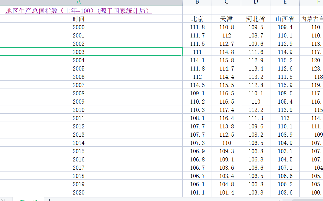 从国家统计局下载地区生产总值指数(上年=100)和名义地区生产总值(亿元)