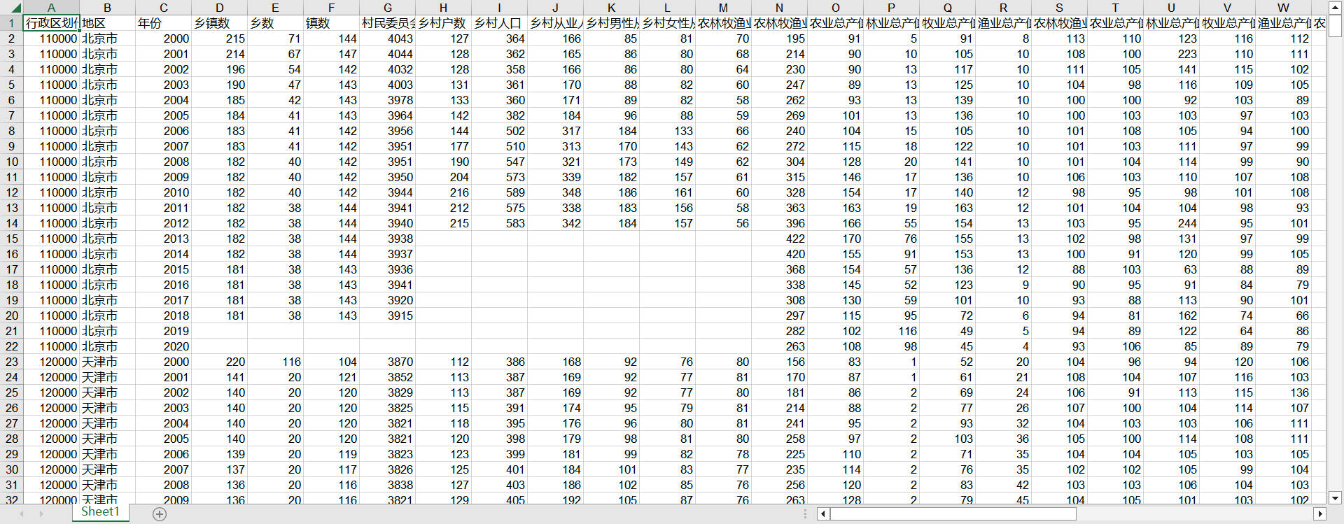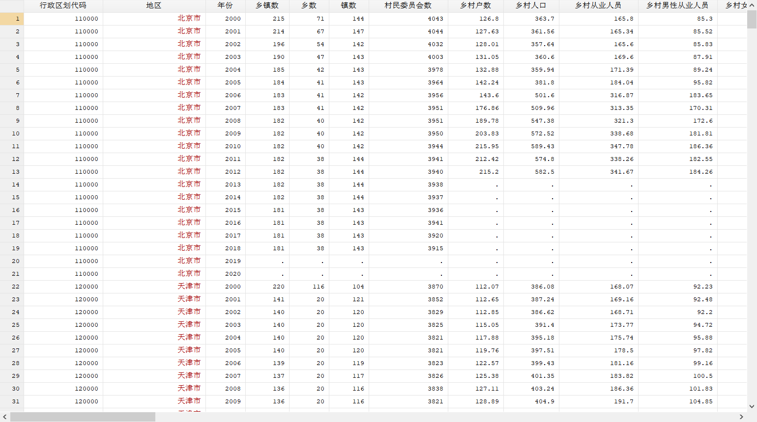 省级面板(2000-2020)十四:农林牧渔产值、农村就业人数、农业机械、灌溉面积等