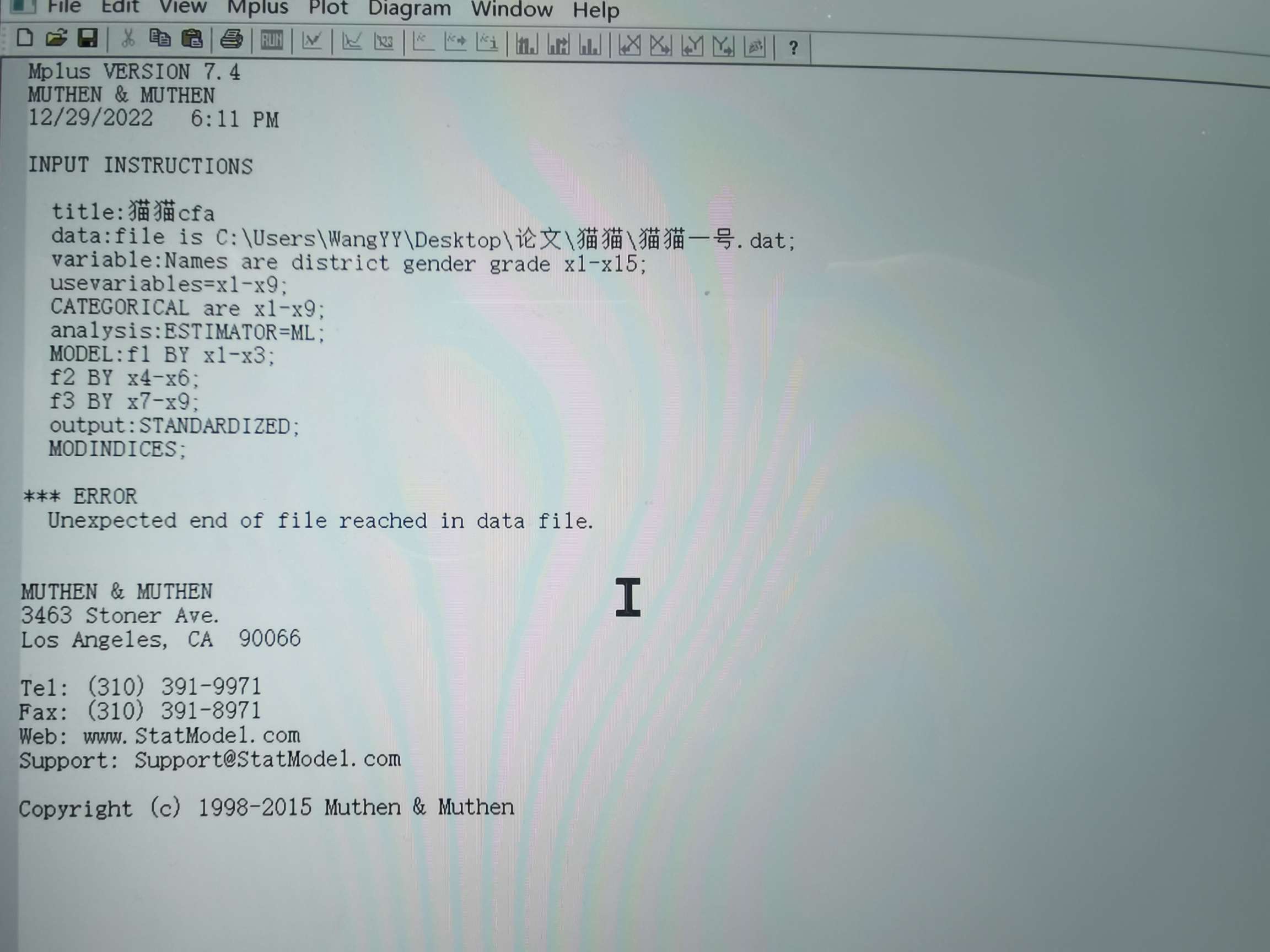 求问大神,Mplus验证性因素分析出现了如下错误,该怎么解