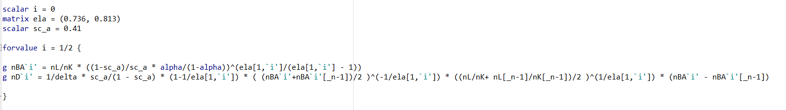 "ela[1,i']" 可能是指数据集中特定商品或服务的价格弹性。变量 "ela" 可能是一个弹性向量或数组,其中每个元素表示不同商品或服务的需求弹性。中括号 "[1,i']" 用于指代第 i 个商品或服务的弹性,其中撇号(')表示在数据集的当前观察或行中引用此值。
