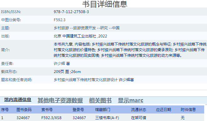 题名和责任者说明:乡村振兴战略下传统村落文化旅游设计 许少辉著