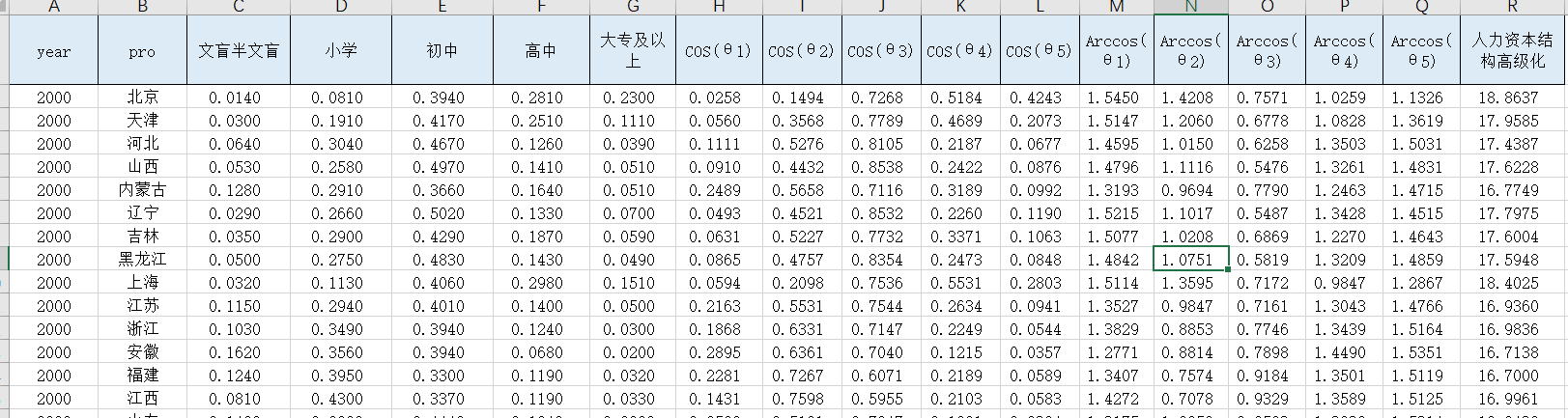 按照就业⼈员的受教育程度分为文盲半文盲、⼩学、初中、⾼中、⼤专及以上五个类型,并把五种人力资源类型列为一个向量X0 = (x0,1, x0,2, x0,3, x0,4, x0,5)