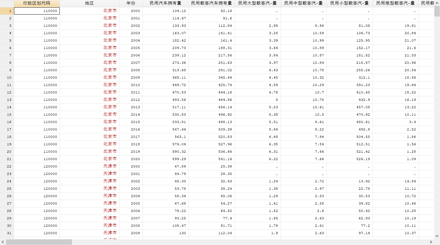 省级面板数据(2000-2020)二十:汽车、货运、客运、轮船等指标