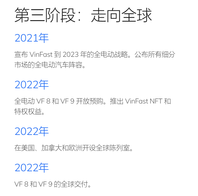 在 VinFast 的官网,我们也可以看到他们的规划,从 VF8 开始,车型都是面向全球市场。