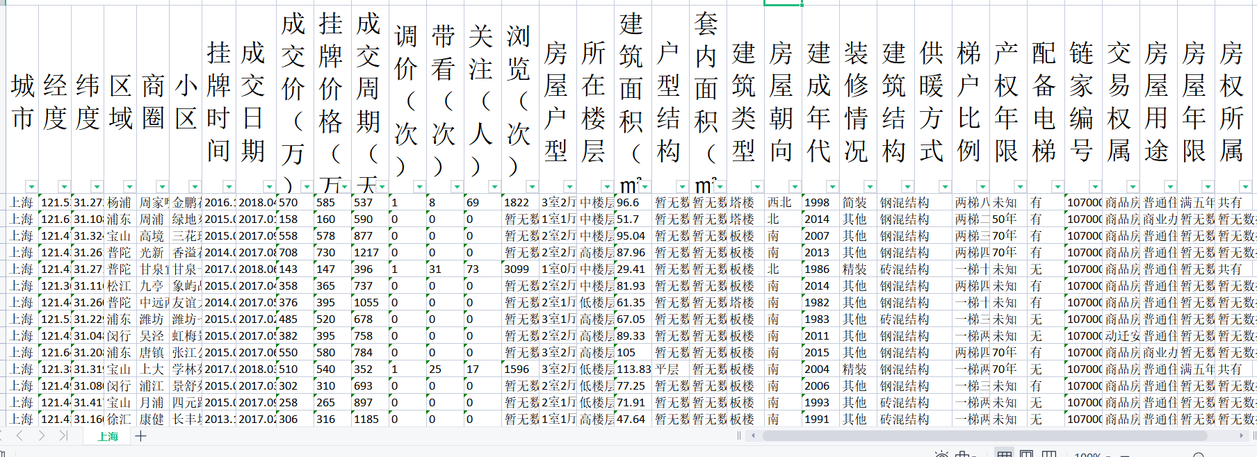 上海市二手房交易价格交易量记录数据