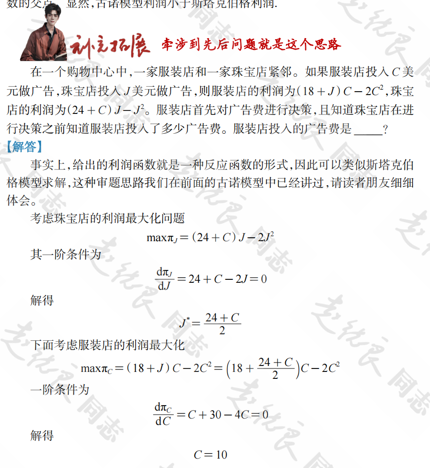 题目不难,可能你是因为题目参数错了导致没做出来。珠宝店的利润为(24+C)J-2J^2的平方项系数为1才能得出答案10。