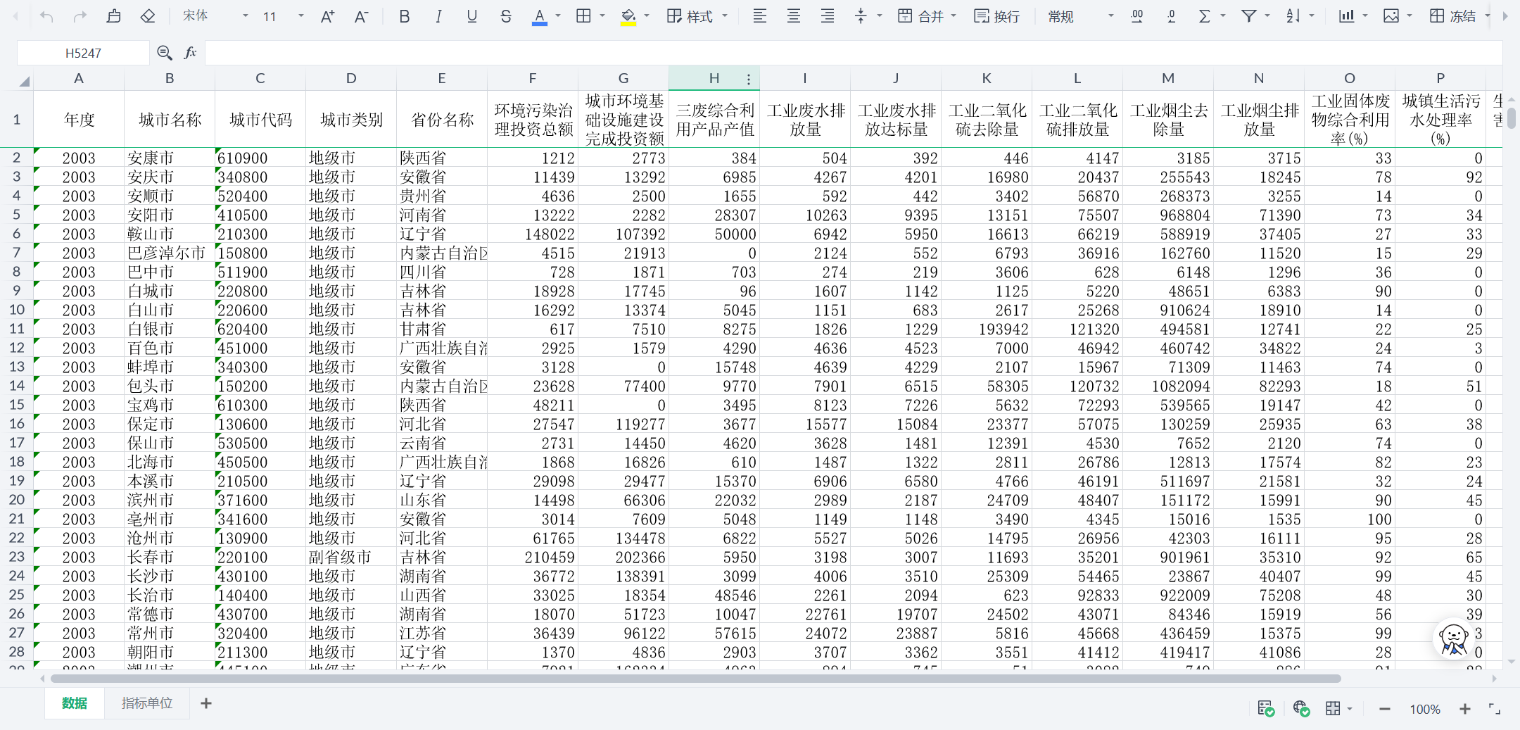 今天我们从历年《中国城市统计年鉴》以及各部分城市年鉴等资料精心整理了一份《300多个城市环境状况与三废排放指标面板数据(2003-2020年)》,希望对大家有所帮助。