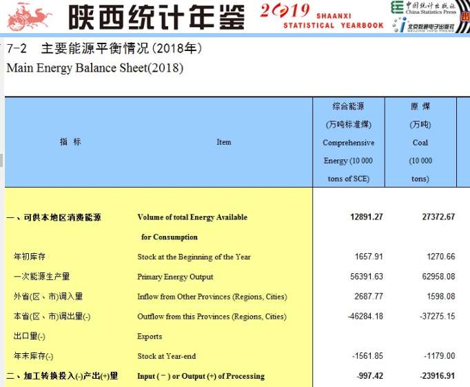 统计年鉴能源平衡表求解释